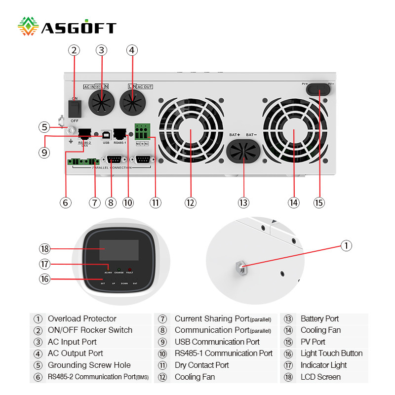 | ⑬ | ⑭ ⑮ | Number of parallel/split phases | 1-6PCS |